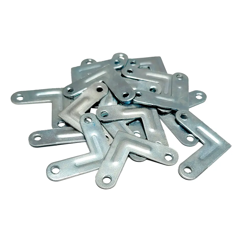 Ele (L) o ángulo metálico para unir esquinas de perfil en aluminio abatible de 25 mm. Es un elemento complementario al perfil para armar marcos sin esquineras realizando cortes del perfil a 45 grados. Se fijan al perfil con remaches.