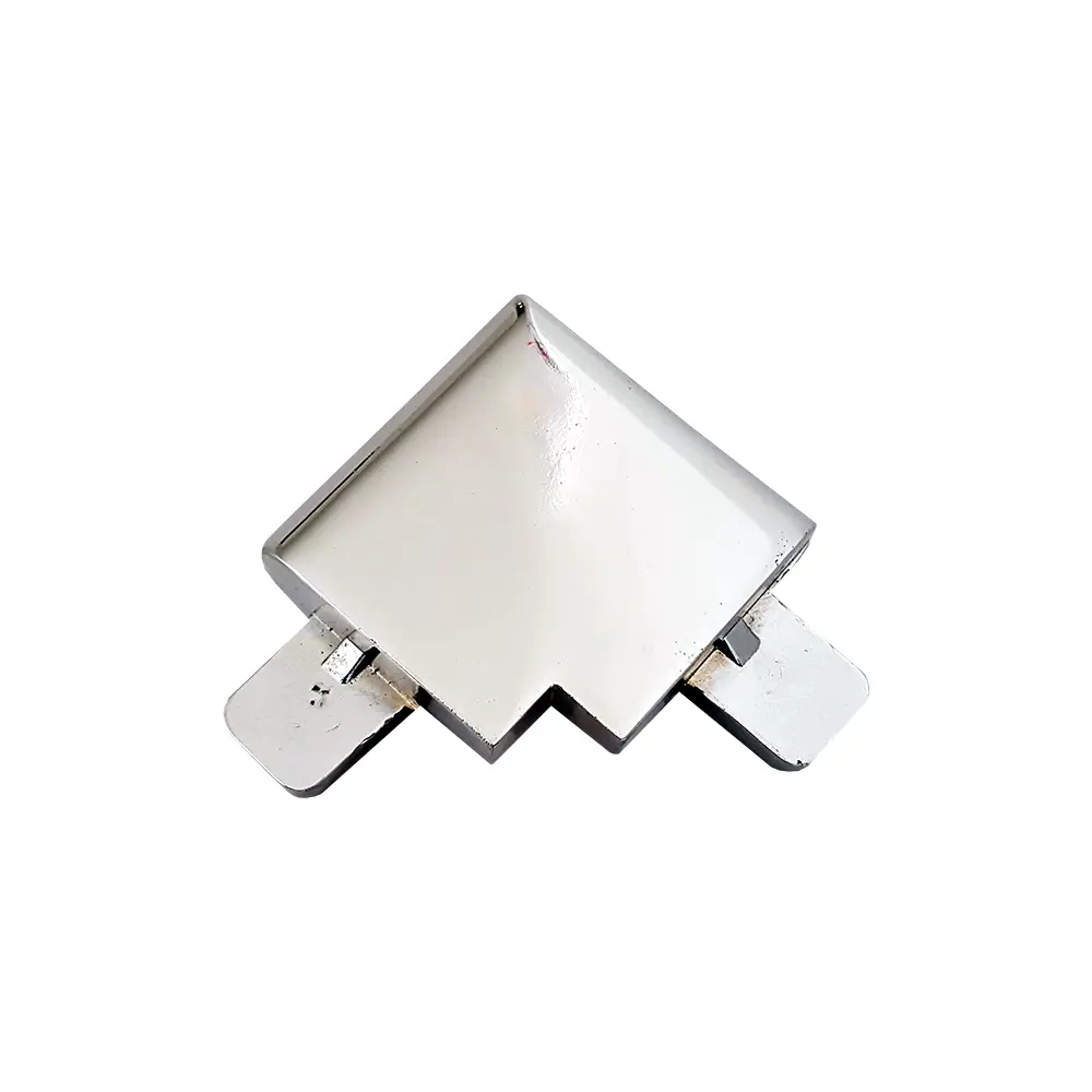 Se conoce como esquinera, esquinero, codo, entre otros. Es un accesorio para el perfil abatible de 35mm, que facilita el armado de marcos, ya que permite unir tramos con cortes a 90 grados. Viene con 2 aletas o patas que ingresan al perfil y se debe unir a éste con remache.
