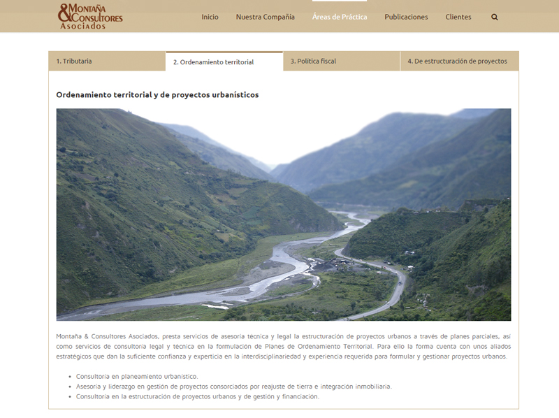 Entregamos el sitio web de la compañía Montaña & Consultores Asociados, a través de la cuál se pretende dar a conocer el equipo de trabajo, los servicios, los proyectos, la actualidad entre otros temas importantes de la empresa, con el fin de tener una presencia en internet similar a la que ya tienen en el mercado.