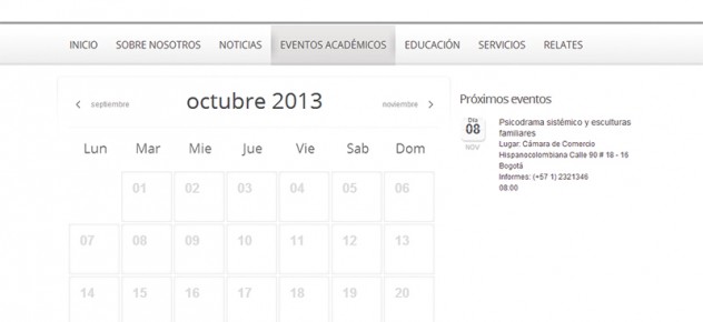 Teniendo en cuenta que uno de las principales actividades que realiza la fundación tiene que ver con eventos de carácter educativo, se incluye como elemento importante un módulo para publicar eventos que permiten visualizar dichos eventos en la página de inicio a manera de cuenta regresiva y un apartado de eventos donde se puede ver un calendario y un listado de los últimos eventos.